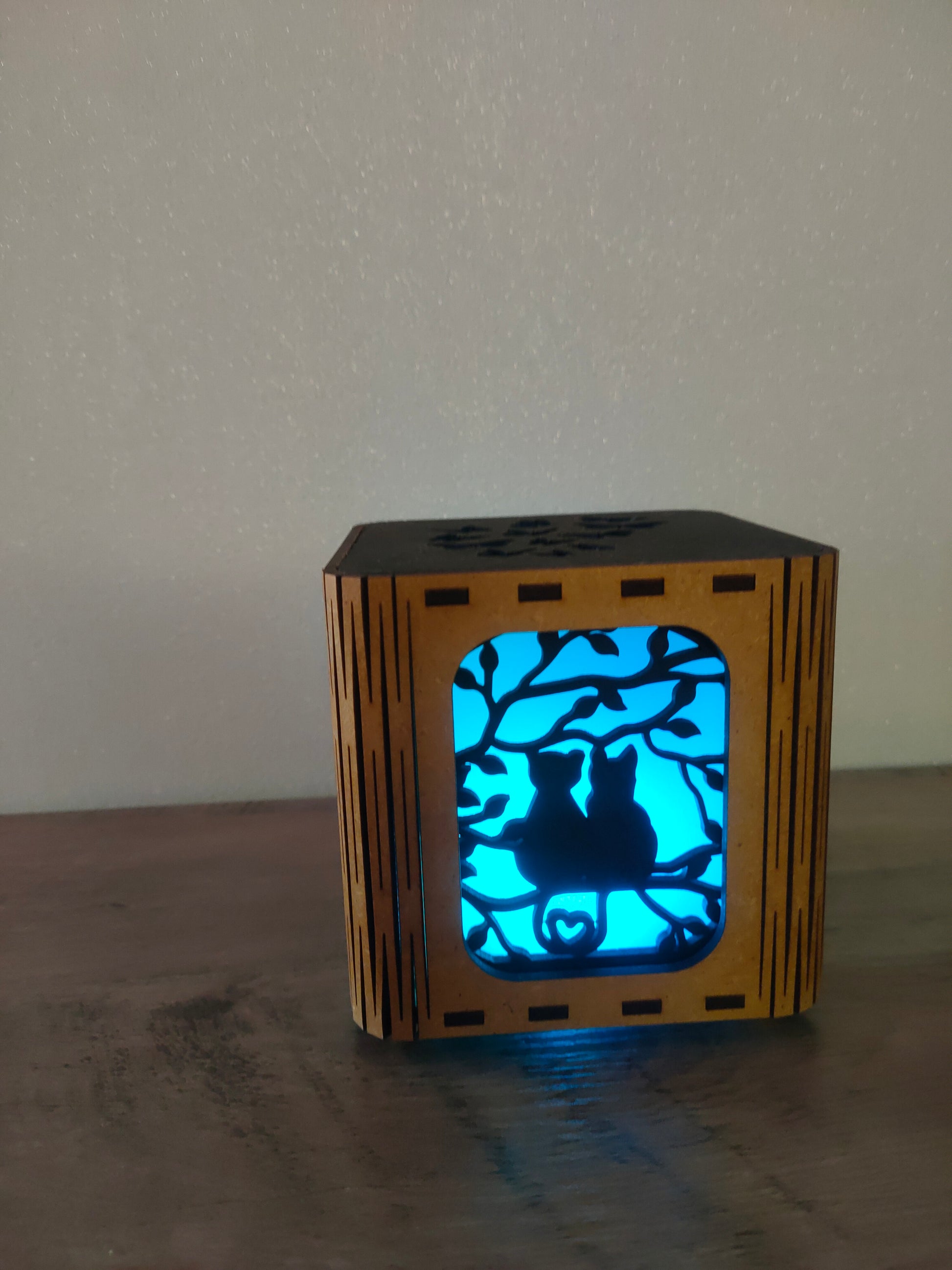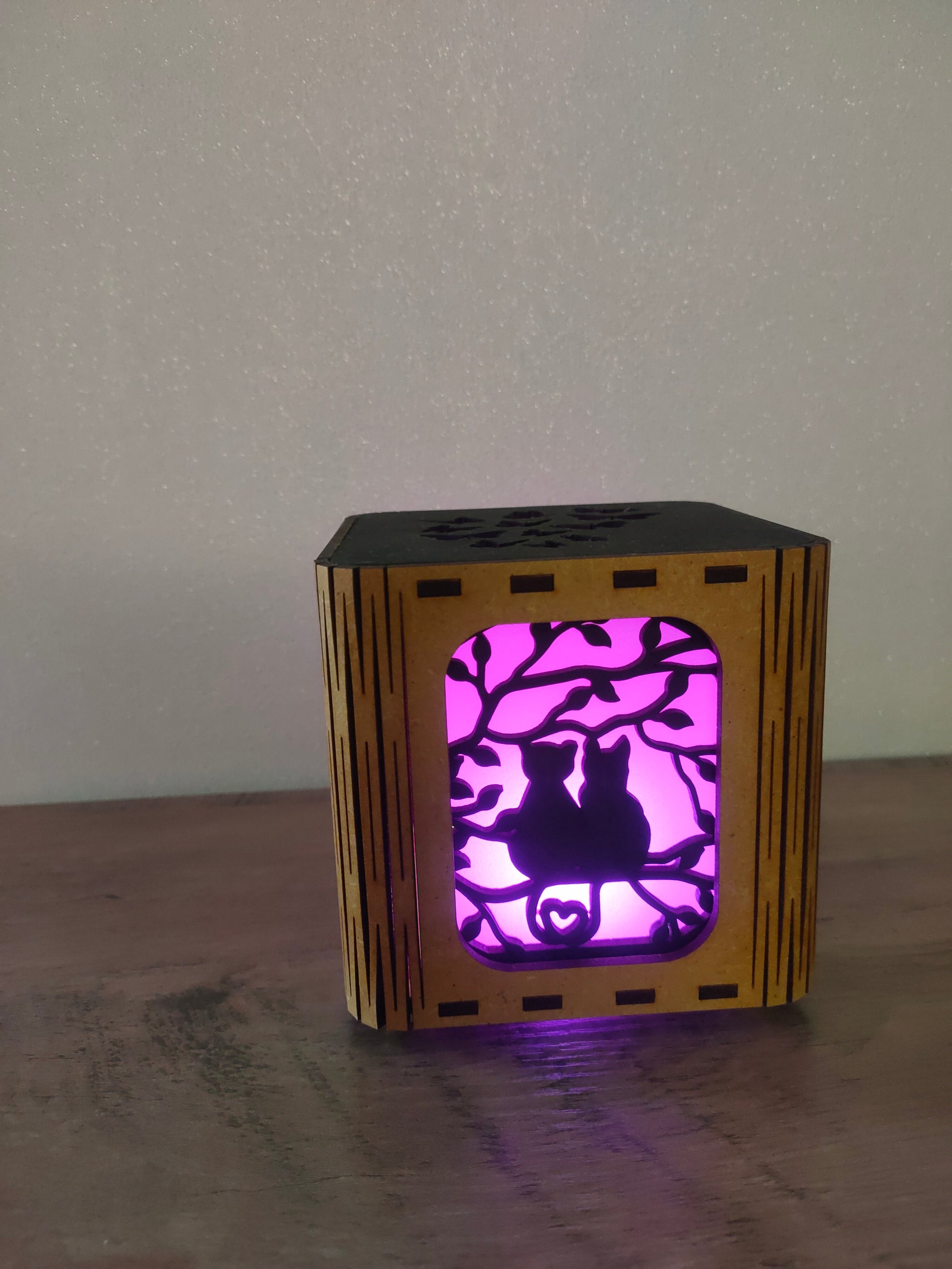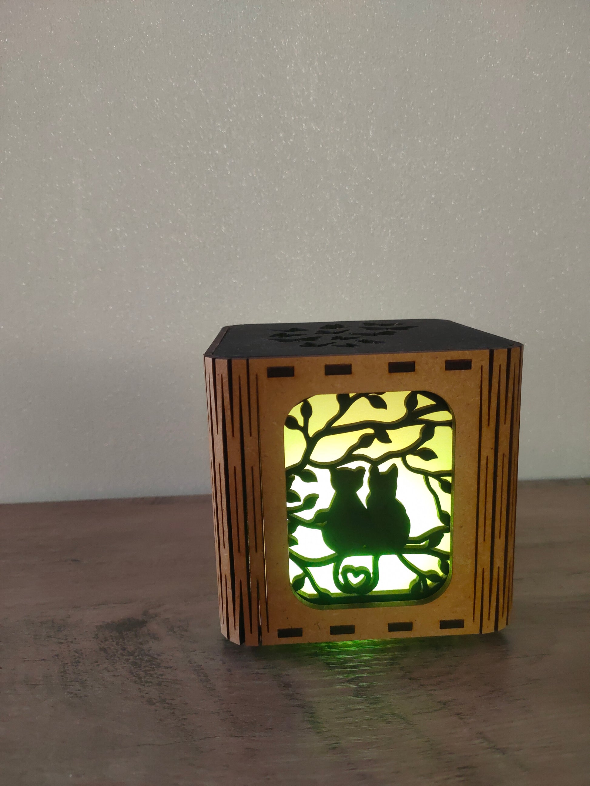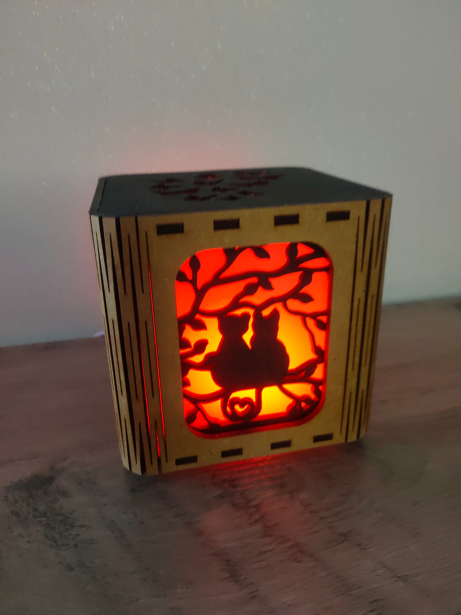 Créez une atmosphère douce et romantique avec la lanterne "Chats Amoureux". Parfaite pour les passionnés de chats de tous âges, elle diffuse une lumière chaleureuse qui invite à la rêverie et à la tendresse. Idéale pour personnaliser vos soirées, elle mêle élégance et charme félin pour sublimer votre intérieur d’une ambiance apaisante et pleine d’amour. Transformez chaque moment en un rêve éveillé avec cette pièce unique.
